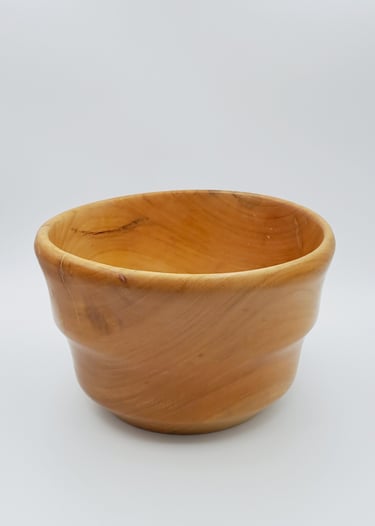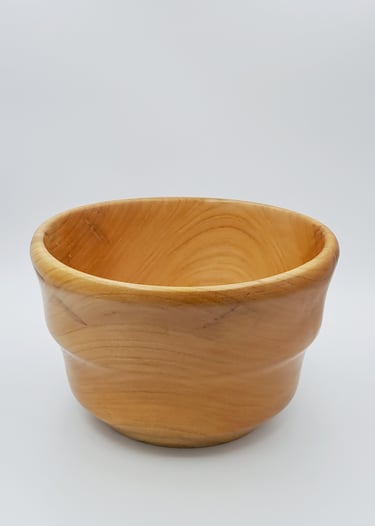 Skleda iz lesa češnje. Razpoka polnjna z zeleno epoksi smolo. Zaključeno z oljem in voskom.