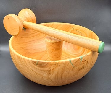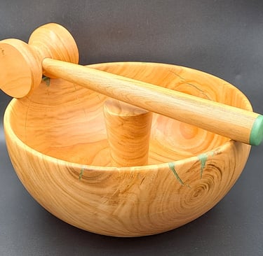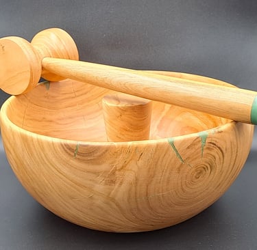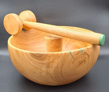 Nutcracker from a cherry wood. Cracks filled eith green pigmented resin. Oil and wax finished.