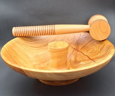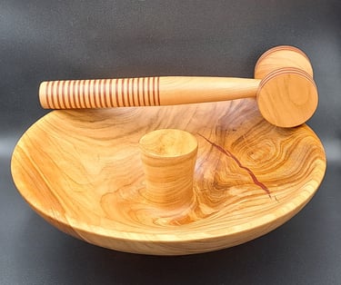 Nutcracker from a cherry wood. Cracks filled with red pigmented resin. Oil and wax finished.