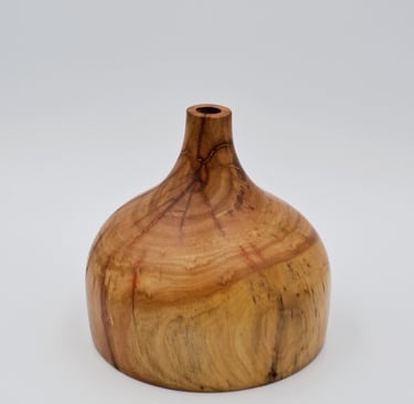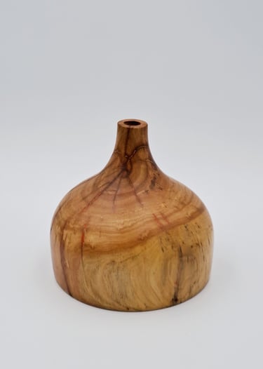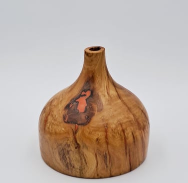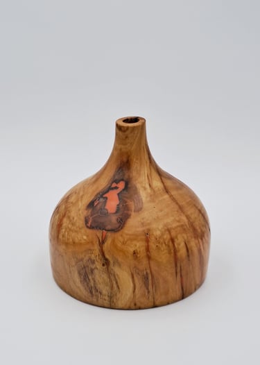 Small vase from a wildfire burnt Smoke tree. Cracks filled with vivid pigment resin. Oil and wax finished.