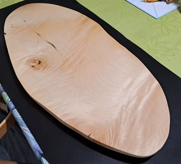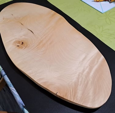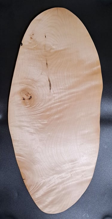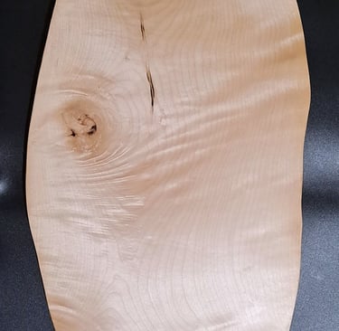 Pladenj iz lesa javorja. Ta kos ima izjemno lepe naravne lastnosti. Skoraj 3d učinek. Razpoke polnjene s črno epoksi smolo. Zaključeno z oljem in voskom.
