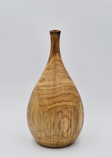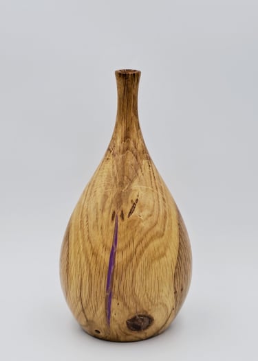 Manjša vaza iz orehove veje. razpoke polnjene z vijolično epoksi smolo. Zaključeno z oljem in voskom.